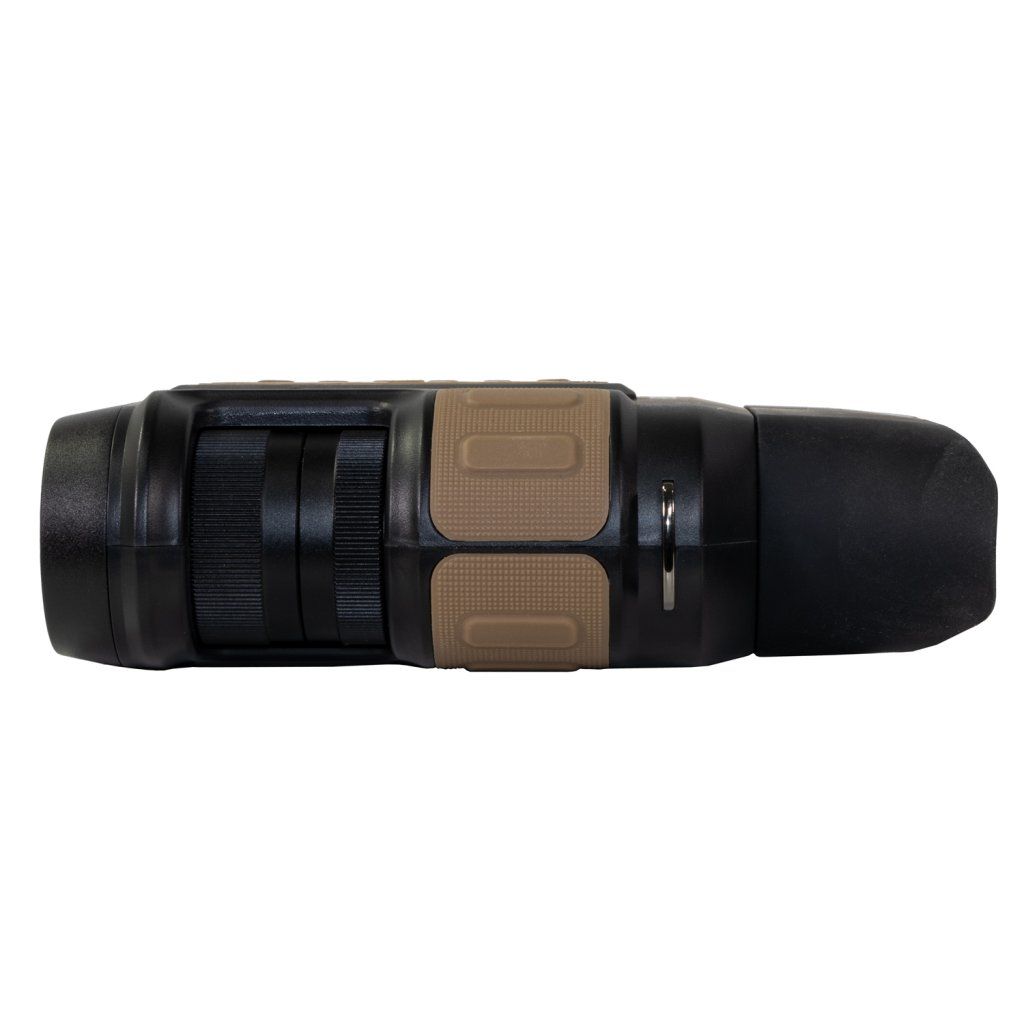 Binoclurile binoculare au un corp ergonomic, rezistent la căderi, cu o suprafață antiderapantă. Binoclul este foarte confortabil de ținut în mână. Când le ridicați, butoanele de control se află chiar sub degetele dumneavoastră. O încărcare este suficientă pentru aproximativ 4-10 ore de funcționare continuă, durata de viață a bateriei depinde de intensitatea cu care este folosită lumina IR.