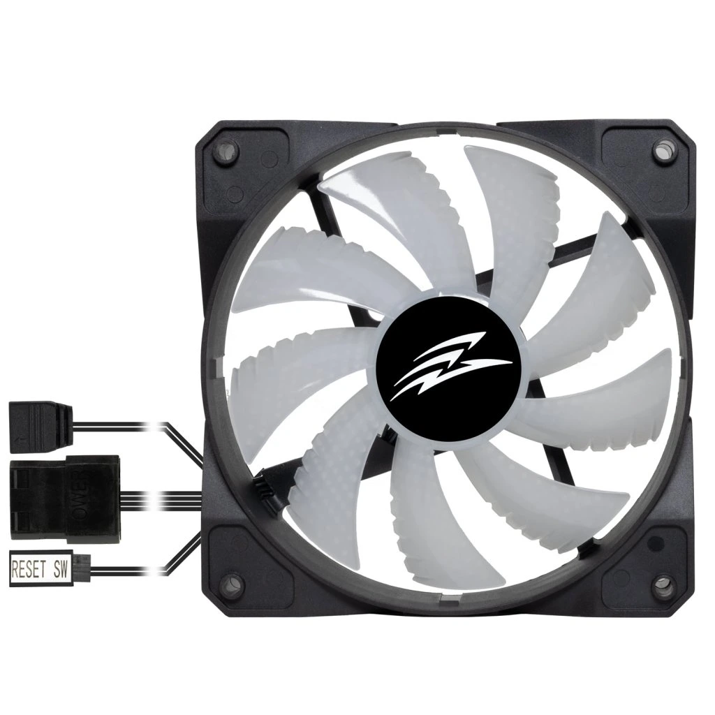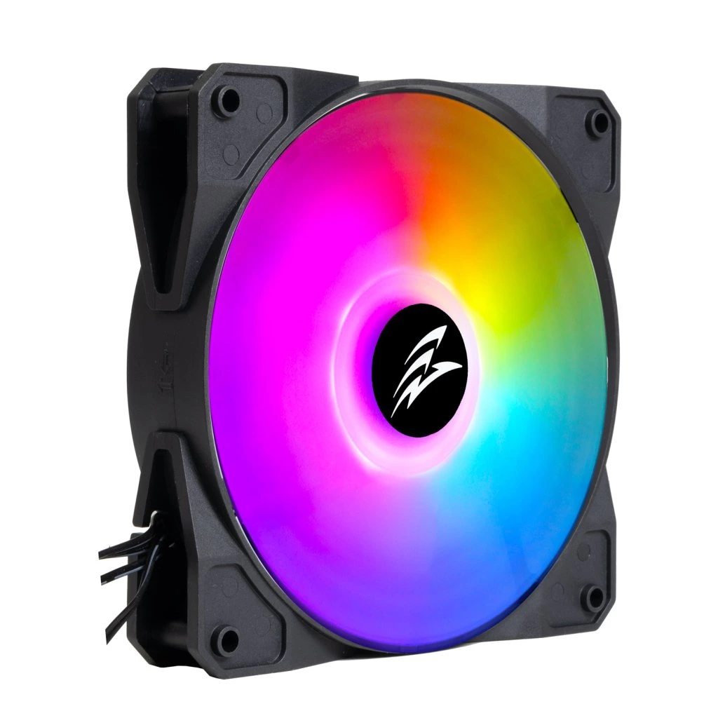 ARGB LED-es szivárványventilátor LED-ekkel. A ventilátor lehetővé teszi a szivárvány spektrum mind a hét színének egyidejű megjelenítését. Ez a vezérlőventilátor az EVOLVEO 12FS ventilátorral való használatra készült. A LED világítás a ház vezérlőpanelén található reset gombbal vagy LED gombbal vezérelhető, vagy a mellékelt ARGB kábel csatlakoztatásával az alaplaphoz.