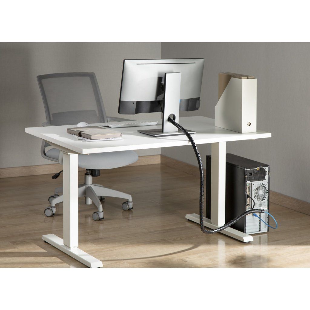 Tubul acestui organizator de cabluri este fabricat din plastic moale, ceea ce garantează o flexibilitate extremă. Se adaptează cu ușurință la forma blatului de lucru, întoarce un colț sau chiar ocolește un picior de masă. În loc de o țeavă dură cu o viață proprie, aveți un ajutor loial la îndemână pentru a vă servi exact acolo unde aveți nevoie de el.