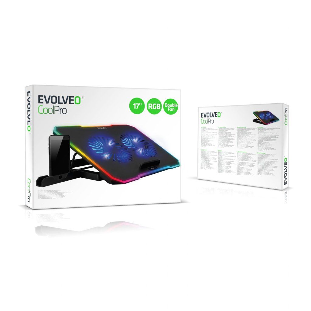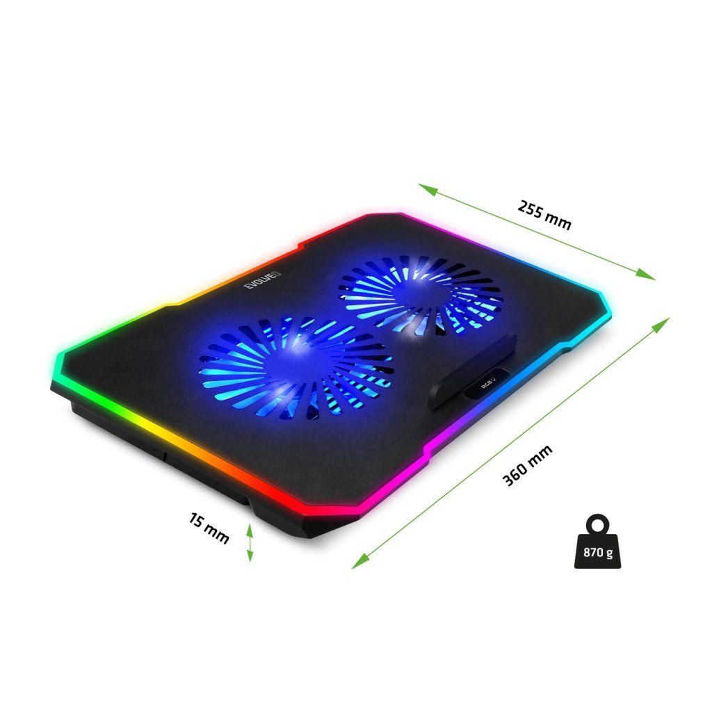 EVOLVEO CoolPro, suport de răcire pentru laptop, 2 ventilatoare, iluminare RGB, negru