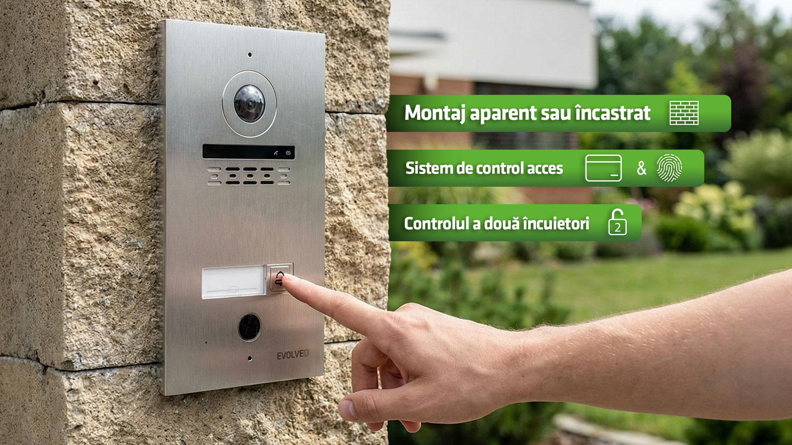 EVOLVEO DoorPhone ID-1, videofon cu 2 fire, RFID, amprentă digitală și suport pentru camere ONVIF