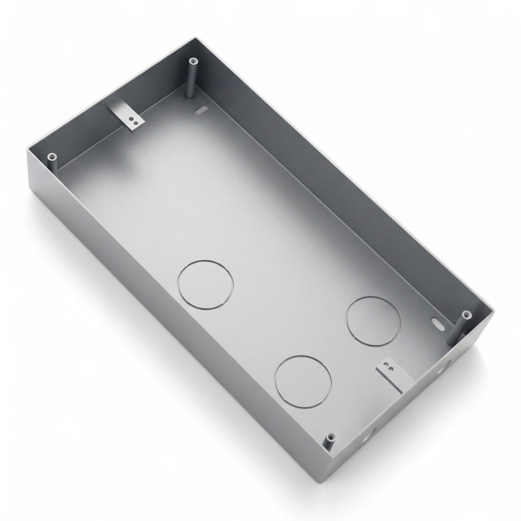 Cutia este fabricată din metal cu un finisaj argintiu pentru a se potrivi cu designul unității exterioare din aluminiu. Designul asigură o potrivire fermă și o durată lungă de viață, chiar și atunci când este utilizată în exterior.