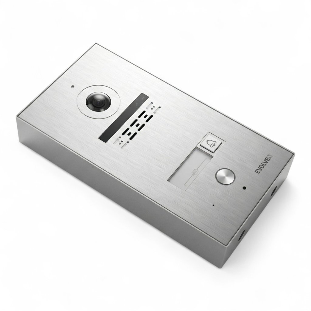 EVOLVEO DoorPhone ID MSB este o cutie de montare metalică proiectată pentru instalarea la suprafață a unităților exterioare DoorPhone ID1 și ID2. Aceasta permite montarea fără a fi necesară încastrarea în perete, ceea ce reprezintă o soluție ideală pentru renovări, instalații retrofit sau montarea pe o fațadă finisată, pe un stâlp de gard sau pe un stâlp de beton. Dacă nu doriți să tăiați în tencuială sau să vă ocupați de o cutie submontată, MSB oferă o soluție rapidă și curată.