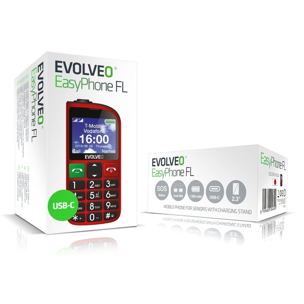 EVOLVEO EasyPhone FL, telefon mobil pentru seniori cu suport de încărcare, roșu
