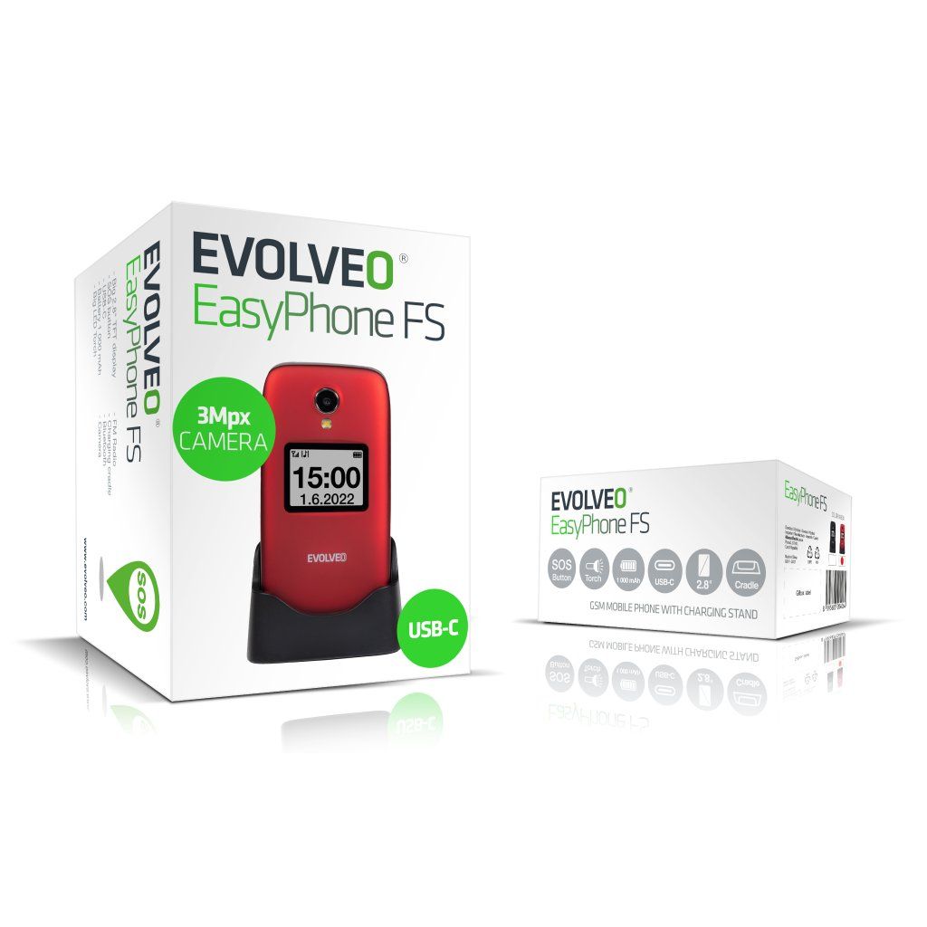 EVOLVEO EasyPhone FS, telefon mobil rabatabil de 2,8" pentru seniori cu suport de încărcare (roșu)