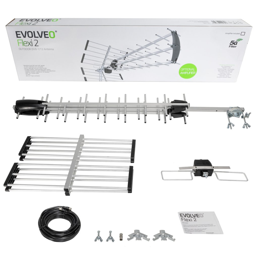 EVOLVEO Flexi 2, antenă pasivă DAB+/DVB-T2 pentru exterior, filtru LTE,4G,5G