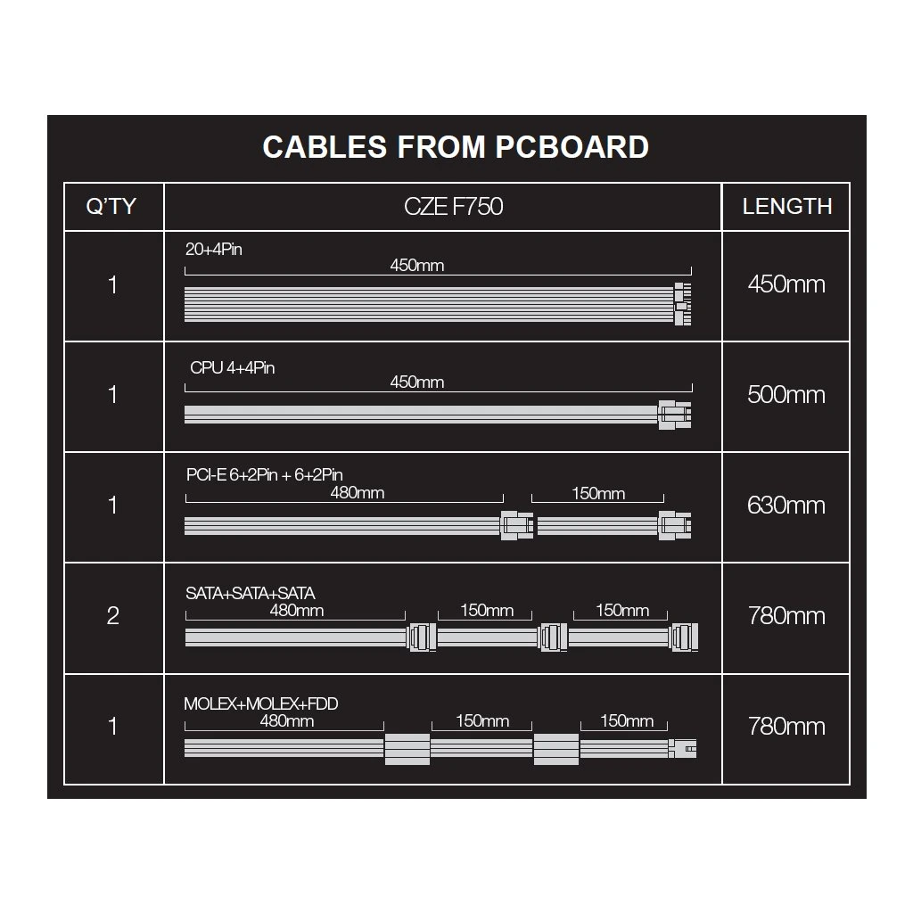 • PCI-E (6+2) +(6+2) pin (480+150mm)