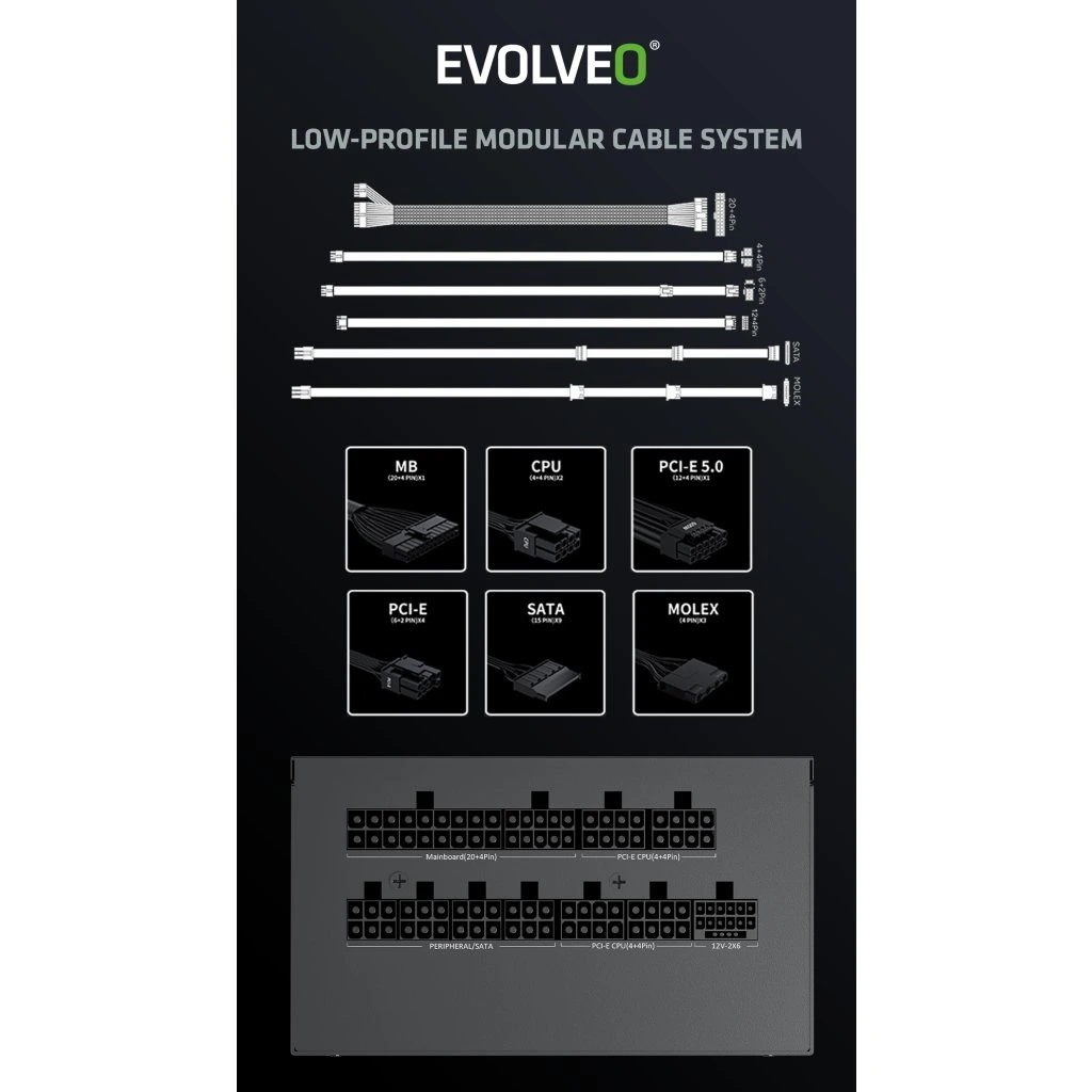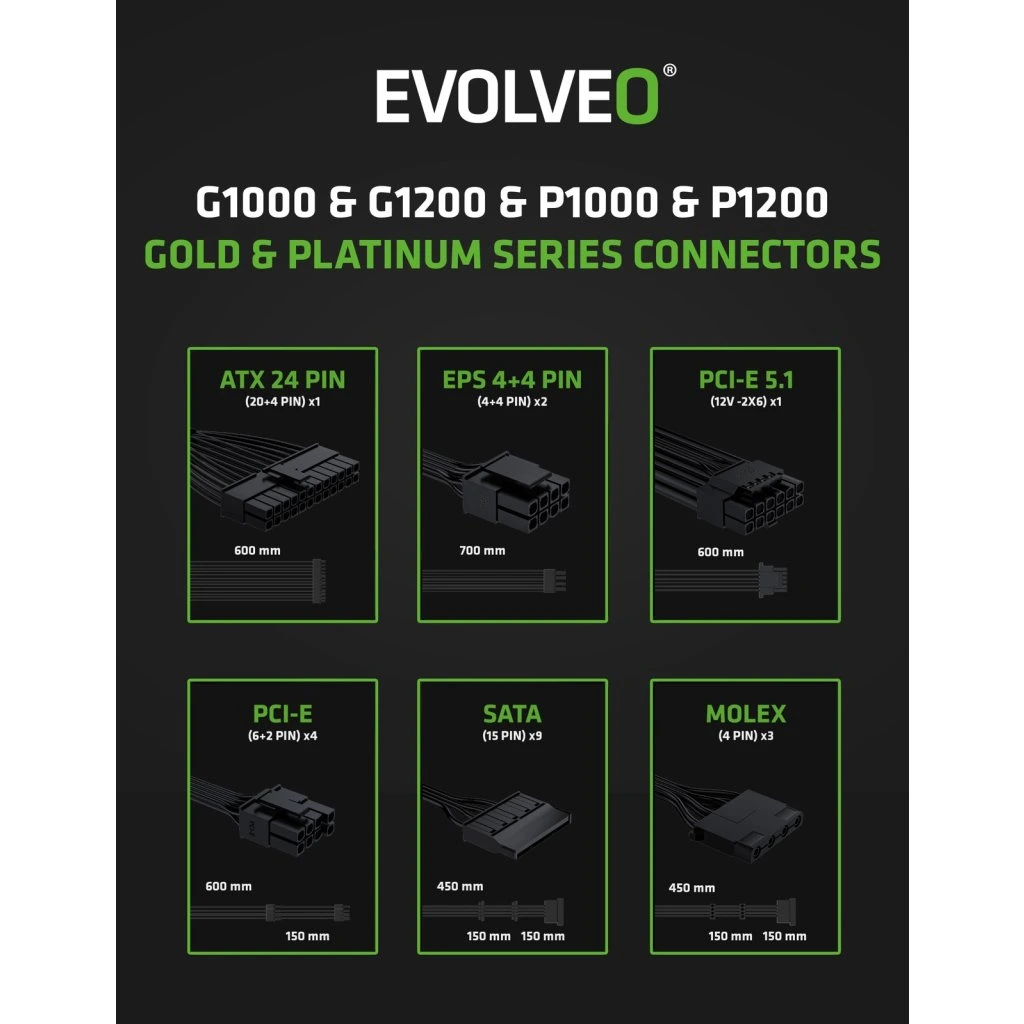 EVOLVEO G1000 sursă de alimentare 1000W, 80+ GOLD, ATX 3.1, aPFC, ventilator 140 mm, garanție 3 ani, negru