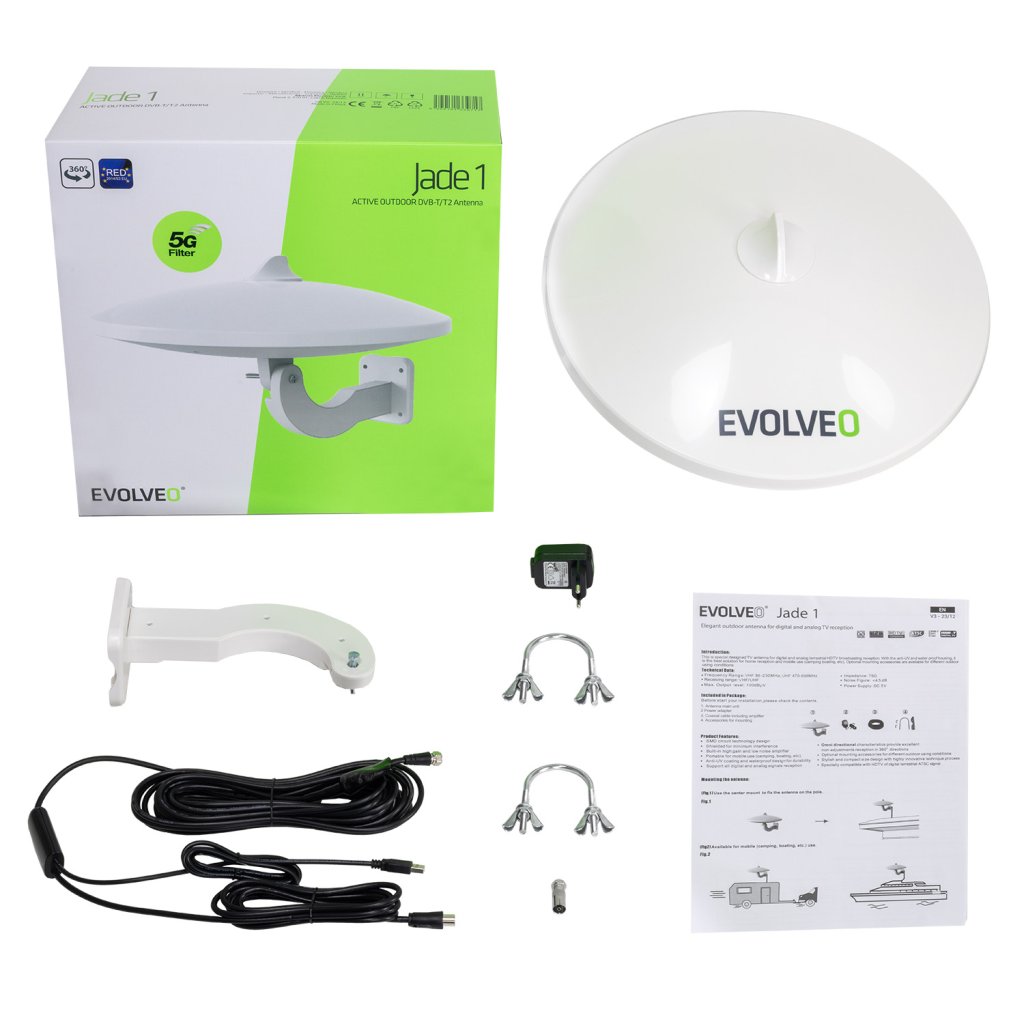 EVOLVEO Jade 1, antenă exterioară activă FM/DAB+/DVB-T2, filtru LTE, 4G, 5G