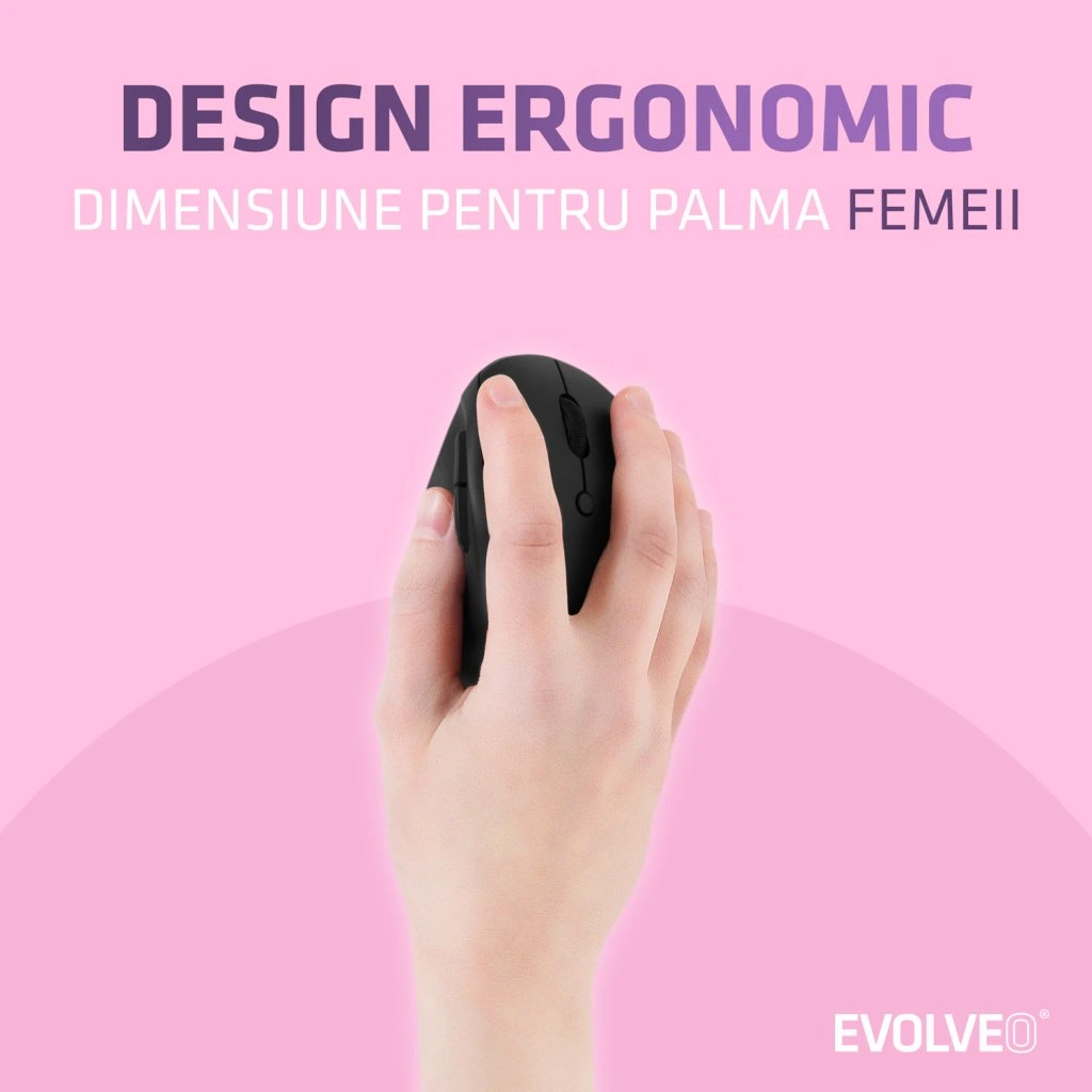 EVOLVEO LadyErgo, mouse ergonomic vertical silențios, 2.4GHz, negru