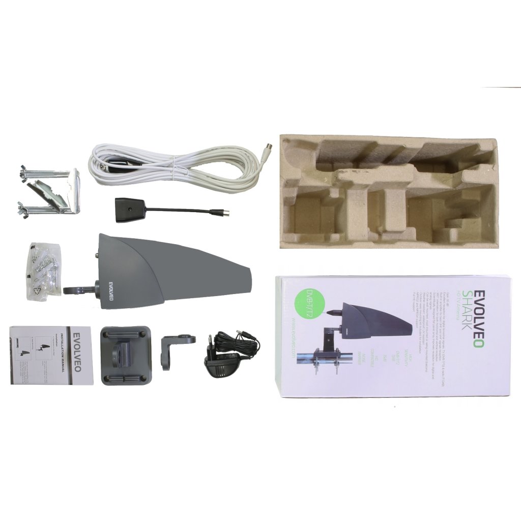 EVOLVEO Shark, antenă exterioară activă DAB+/DVB-T2, filtru LTE, 4G, 5G