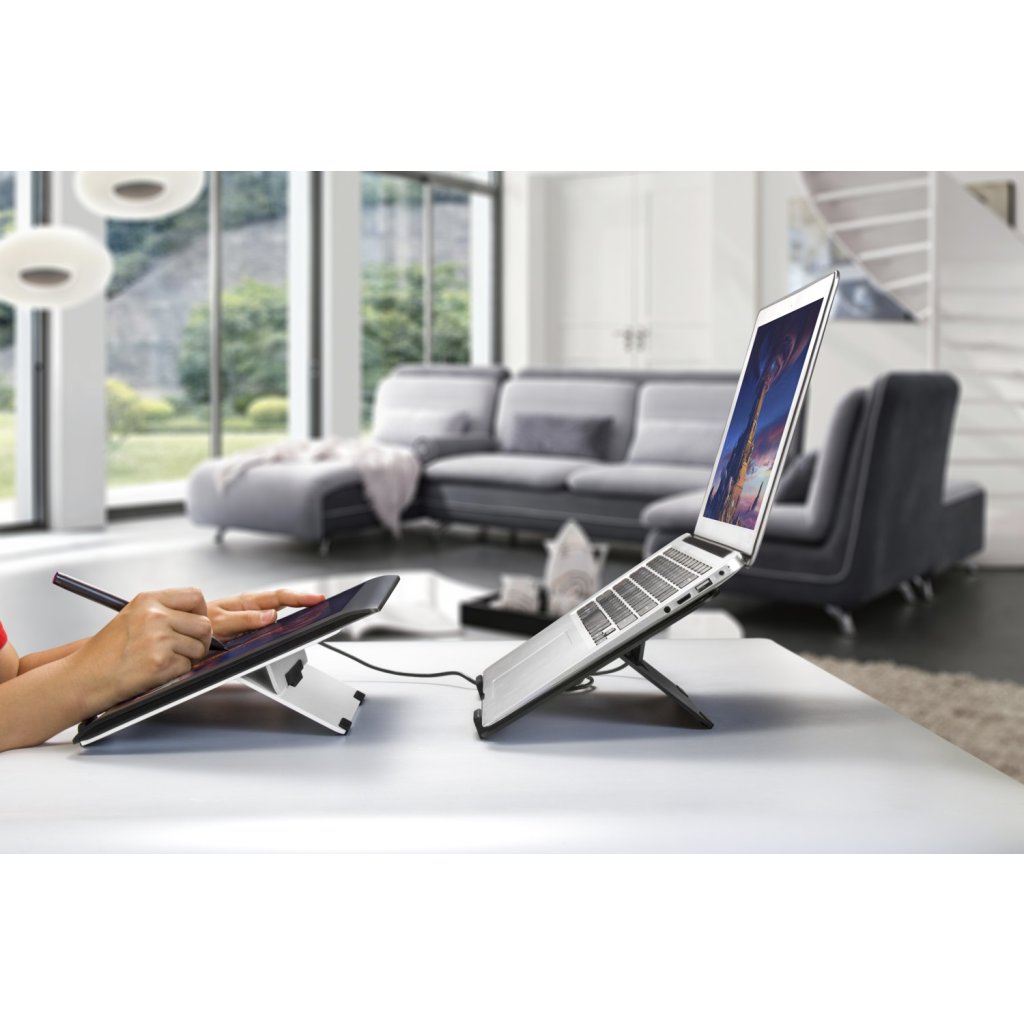 Acest suport din aluminiu va deveni componenta de bază a unui laptop de lucru obișnuit, a unui Ultrabook ușor și a unei mașini de jocuri mai robuste. Este proiectat ca un instrument universal pentru laptopuri și tablete de până la 16". Cu o capacitate de încărcare de 10 kg, acesta poate transporta cu ușurință toate aceste dispozitive.