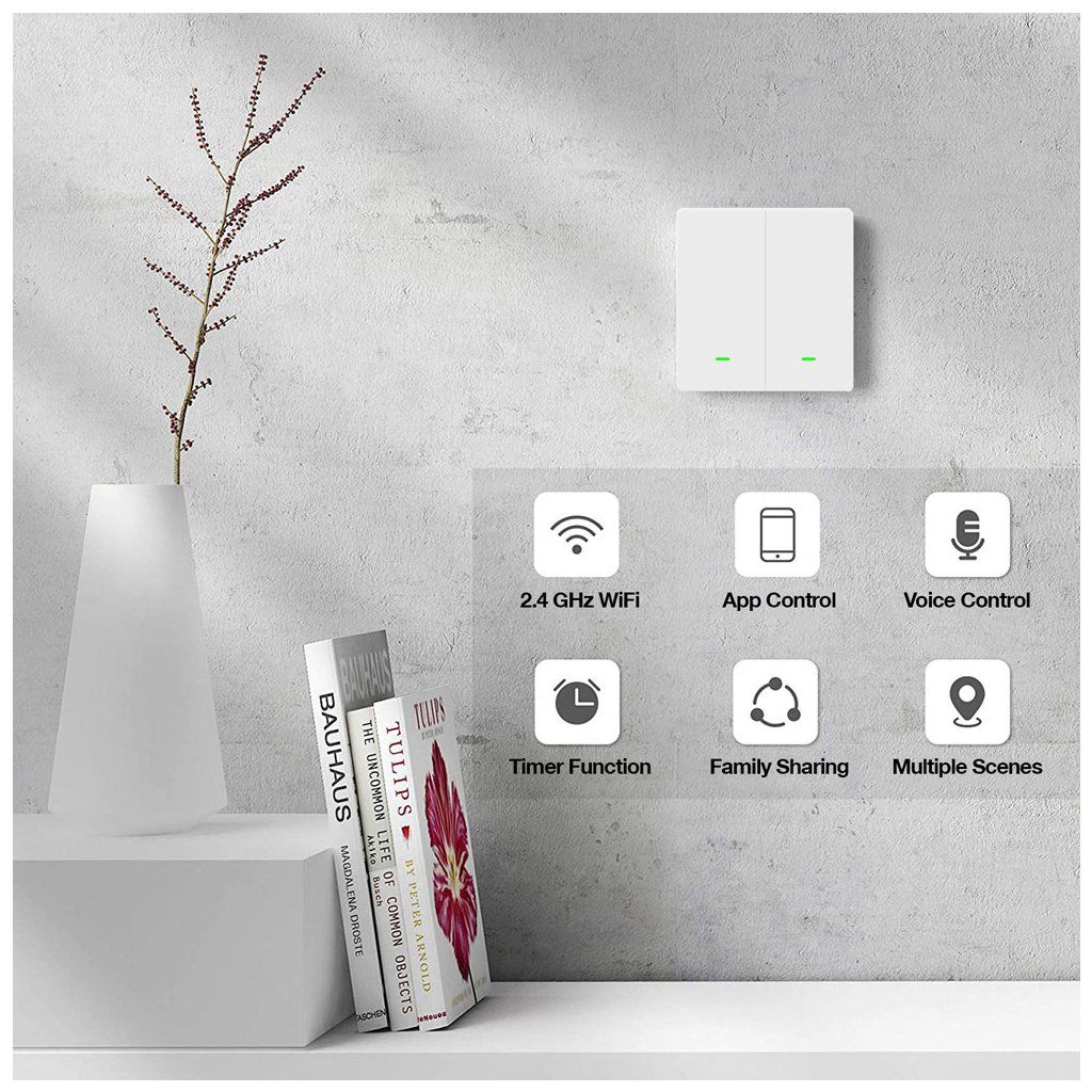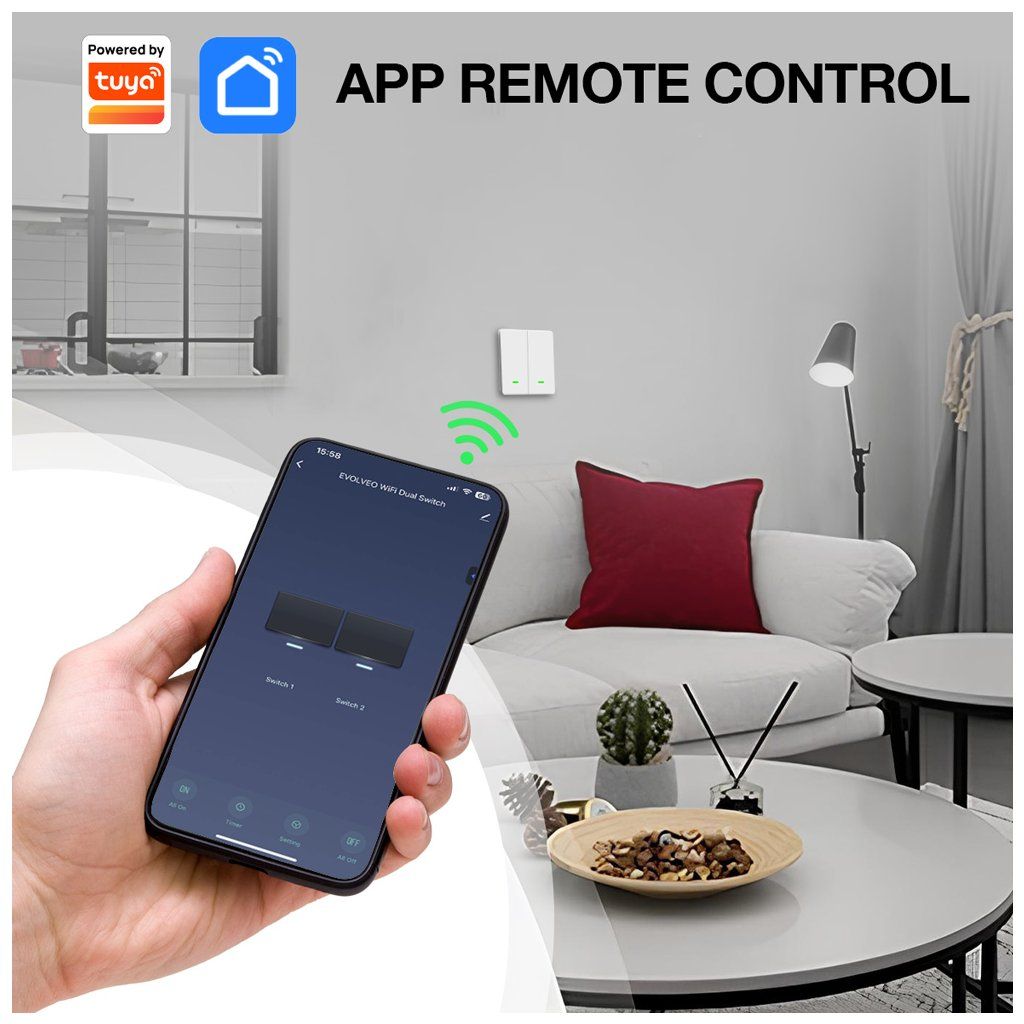 Interuptorul inteligent oferă o soluție simplă și de economisire a energiei pentru controlul iluminatului în casă. Conectarea la aplicațiile Tuya (Smart Life) prin WiFi vă permite să vă controlați în mod convenabil iluminatul direct de pe smartphone, indiferent dacă utilizați un iPhone sau un telefon cu Android. Cu această opțiune aveți control total asupra iluminatului în orice moment și de oriunde, ceea ce aduce economii semnificative de energie și crește confortul general.