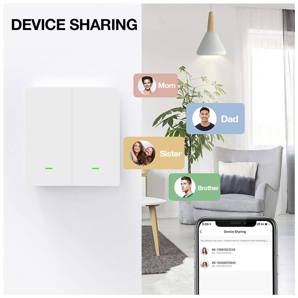 Intrerupător inteligent fabricat din material PC de calitate V0, care nu numai că încetinește combustia, dar crește și rezistența la foc a întrerupătorului și asigură siguranța casei dvs. Întrerupătorul inteligent necesită o conexiune la firul neutru pentru a asigura funcționarea sigură și fiabilă a întrerupătorului, oferind liniște și asigurarea că locuința este protejată.