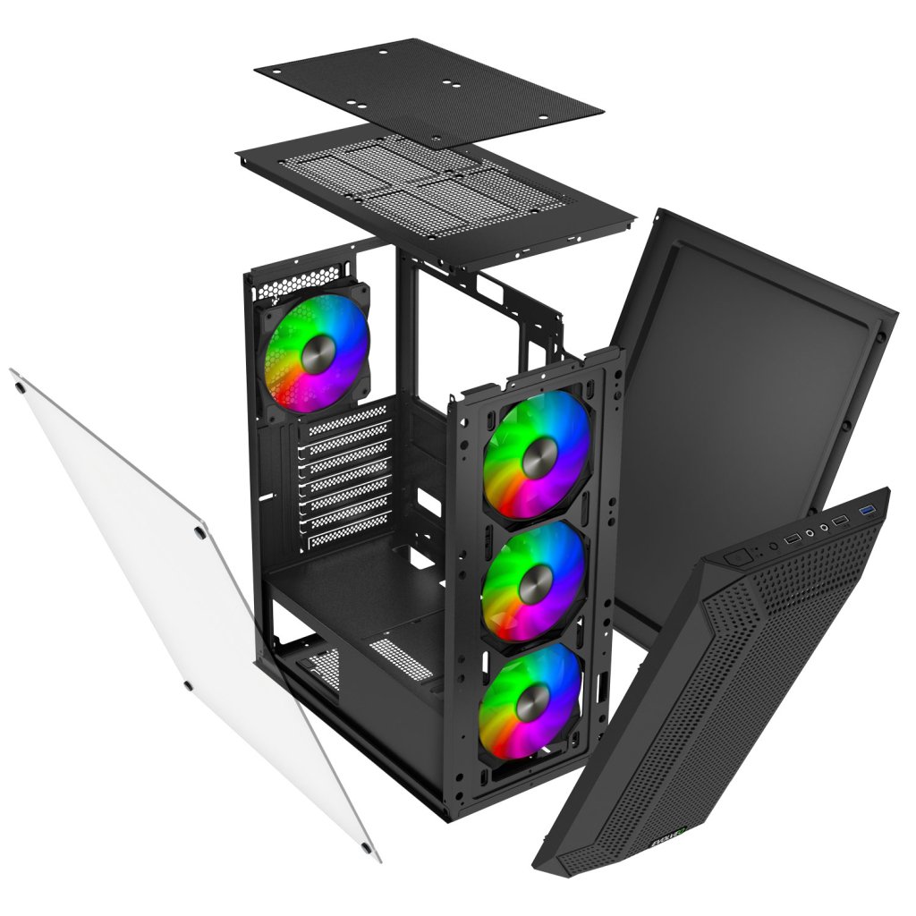 EVOLVEO Xenon, carcasă ATX, 4 ventilatoare ARGB 120 mm, panou frontal cu plasă pentru fluxul de aer, negru